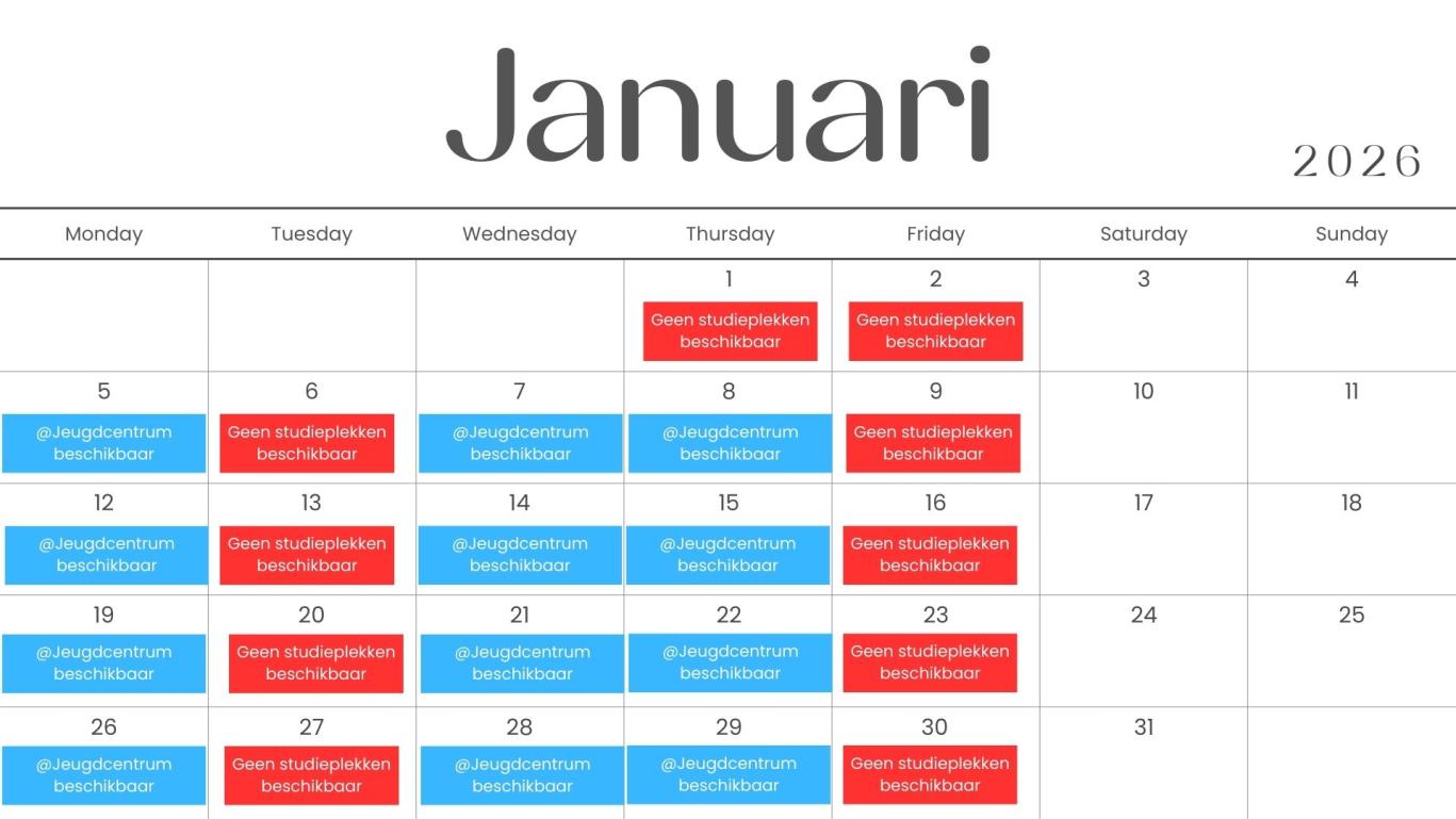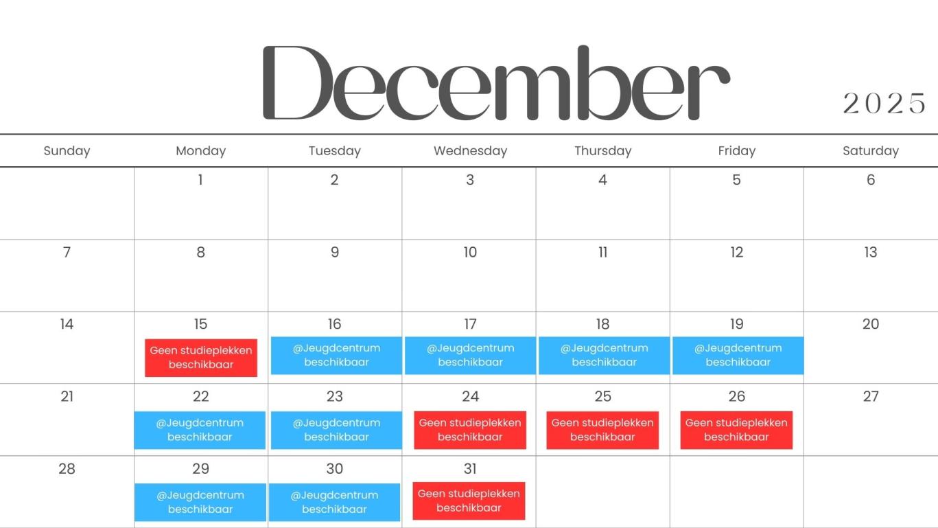 - Van dinsdag 16 december 2025 t.e.m. vrijdag 30 januari 2026